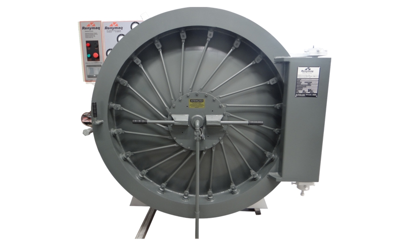 Elétrica e a vapor para 6-12-14-16 pneus com sistema de vulcanização por meio de circulação de ar quente. Com motor de 7.5 cv blindado.