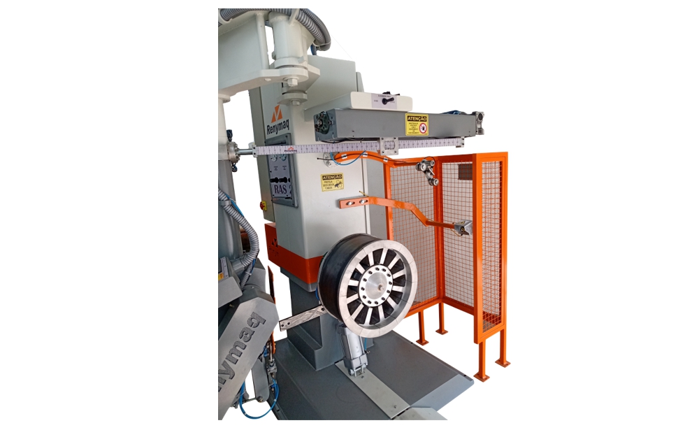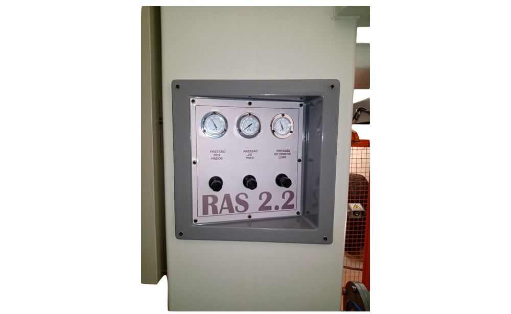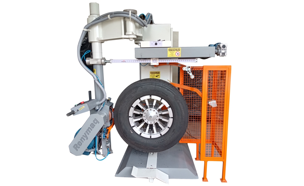 Elevador pneumático que permite ao operador a colacação e retirada do pneu.